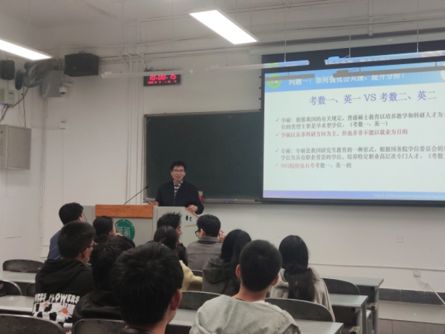 9月26日上午,在6B301,范镇南通过解析最新的考研政策,让同学们对考试的总体情况有了更清晰的认识。在应试技巧分享环节,分享了自己的备考经验和具体方法,为考生们指明了备考道路。在心理疏导环节,范镇南则着重强调了考研期间的心理调整,鼓励大家时刻保持积极乐观的心态。