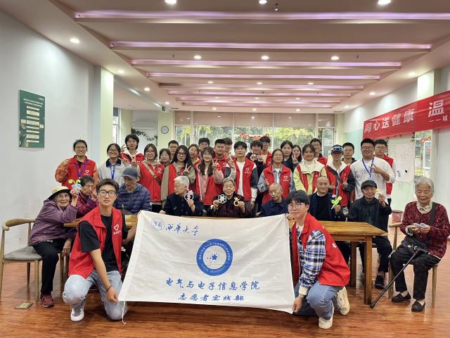 10月29日下午两点,电气学院志愿者们在西华大学西门集合前往青孝颐养中心。此次活动旨在号召同学们关爱老人们,增加志愿者们敬老的美德。