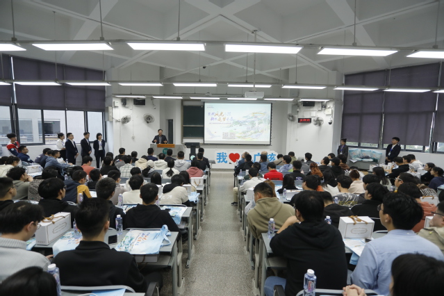 随后在6B-301举行的中广核新能源企业招聘宣讲会上,中广核新能源四川分公司总经理章军剑向同学们详细地介绍了公司的发展历程、企业文化、人才培养和薪酬保障等方面的信息。孙强向同学们重点介绍了公司实施的薪酬福利和津补贴制度,并强调公司将继续改革人力资源制度,确保员工的发展通道畅通无阻,提高人力资源管理的质量和效率,为公司的发展做出更大贡献,并邀请优秀毕业生加入中广核新能源,共同推动清洁能源事业的发展。