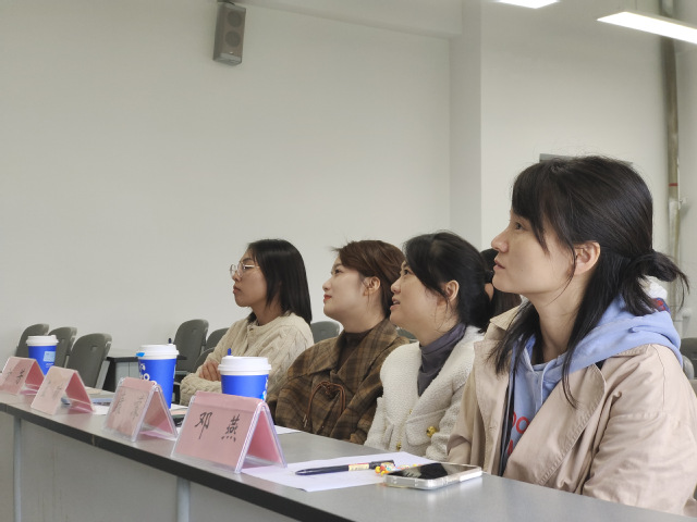 117日中午12:00,面试环节在6c319教室进行。本次面试到场的评委老师有:邓燕老师,康濛老师,蓝琼老师,方芳老师。选手以PPT形式介绍自己并呈现工作内容,评委老师根据陈述及台上表现予以评分。