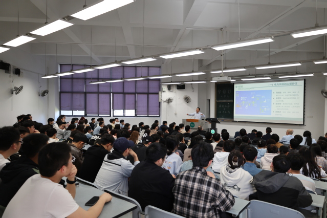 会后,白仕雄在6A-301为同学们举办了一场讲座。为了让同学们对国家电网的工作模式有一个清楚的认识,白仕雄简要地介绍了电力系统及新型电力系统,生动形象地向同学们指出了新型电力系统的优势,其清洁低碳、安全充裕、经济高效、供需协同、灵活智能的特征,使新型电力系统的建设在当今时代势在必行。