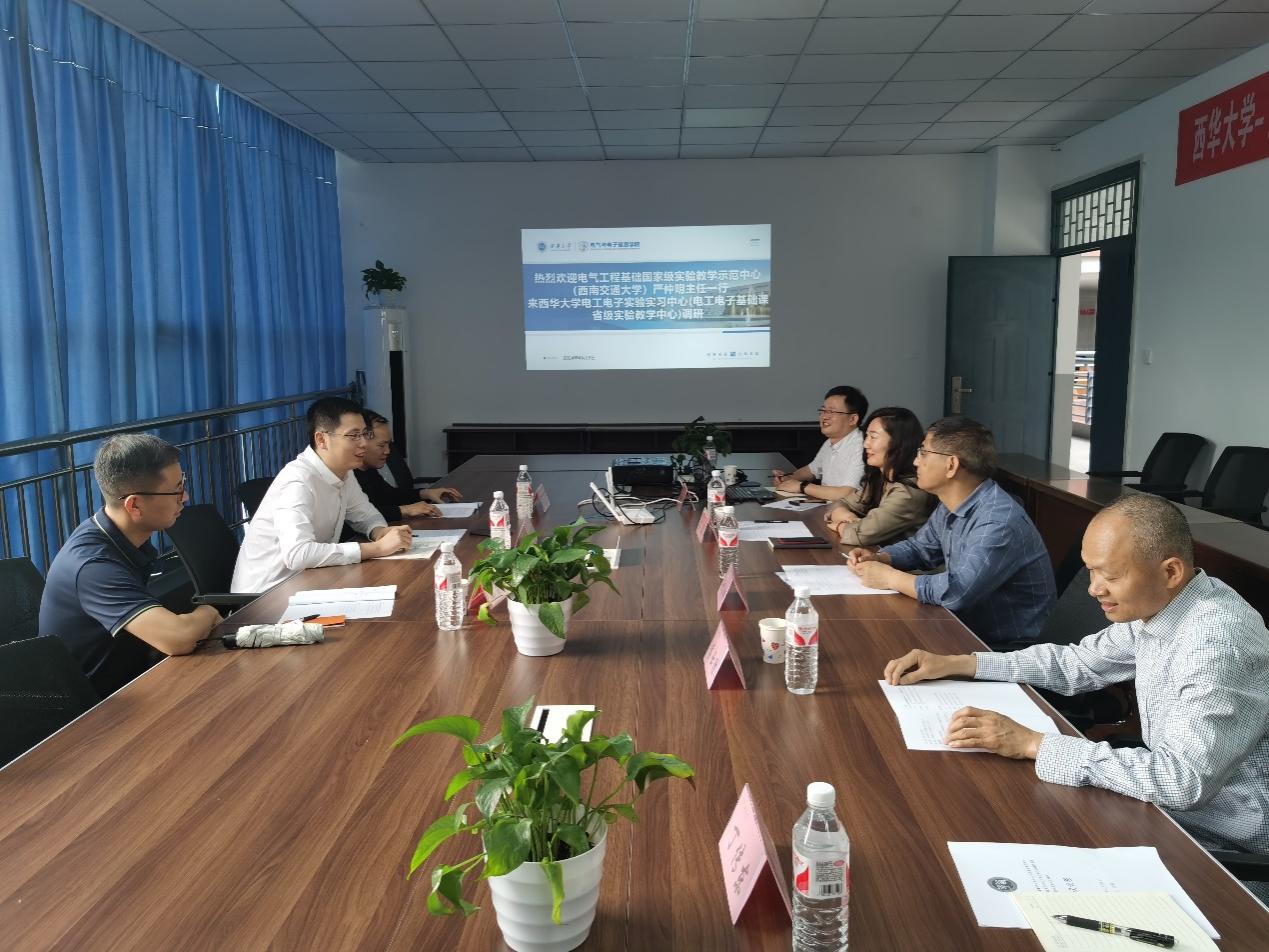 4月29日上午,电气工程基础国家级实验教学示范中心(西南交通大学)主任严仲明、副主任谢美俊、副主任陈金强到访电工电子实验实习中心开展调研交流,电气与电子信息学院副院长王涛、电工电子实验实习中心主任古世甫、中心教师徐学彬、李云胜、丁传东参加交流会,古世甫主持会议。