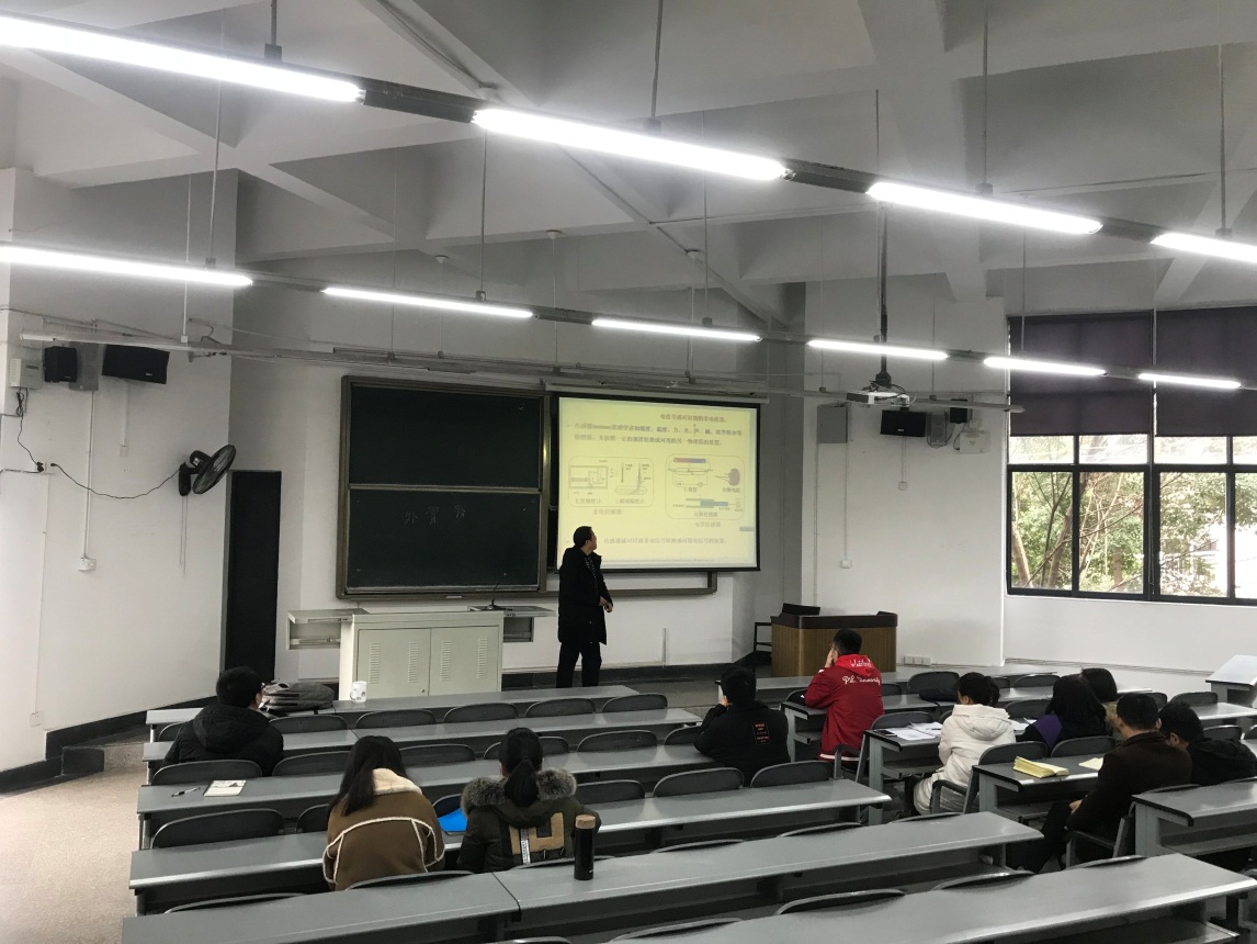 20191226日上午10:40,电气与电子信息学院研学论坛于6B-304开展了学术交流讲座。邬祖全博士做了一场题为“基于GO/PANI的湿度传感器研究”的学术报告,电气与电子信息学院师生到场参加。