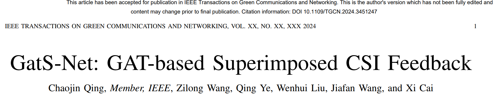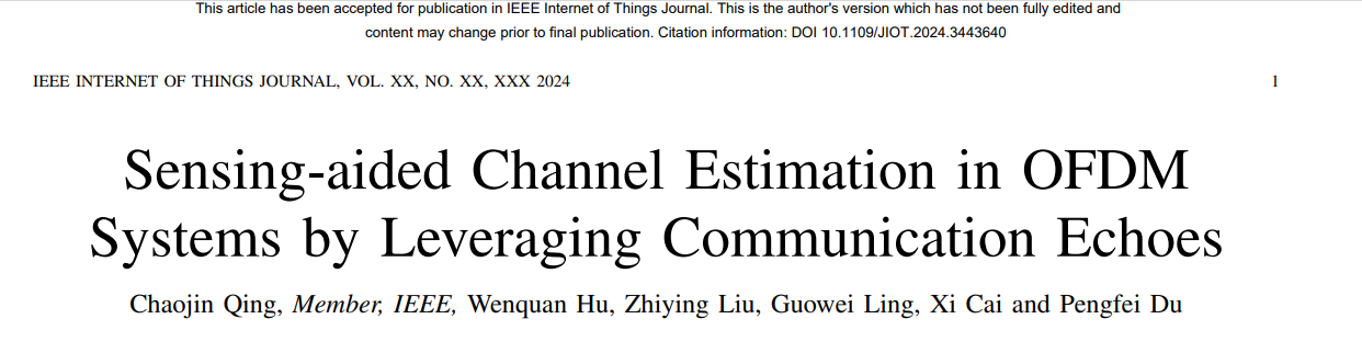 针对5G/6G促生的通感一体化和泛在智能关键技术,WNCG团队在无线通信物理层已潜心研究了7年,形成了系列的研究成果。近一年来,在中科院SCI 一区《IEEE Internet of Things Journal》TOP期刊上发表题为“Sensing-aided Channel Estimation in OFDM Systems by Leveraging Communication Echoes”学术论文;在中科院SCI 一区《Chinese Journal of Aeronautics》期刊上发表题为“LoS sensing-based superimposed CSI feedback for UAV-assisted mmWave systems”学术论文。在中科院SCI 二区《IEEE Transactions on Vehicular Technology》TOP期刊上发表题为“Compressed ELM-based Frame Synchronization”的学术论文和《IEEE Transactions on Green Communications and Networking》期刊上发表题为“GatS-Net: GAT-based Superimposed CSI Feedback”的研究性论文。