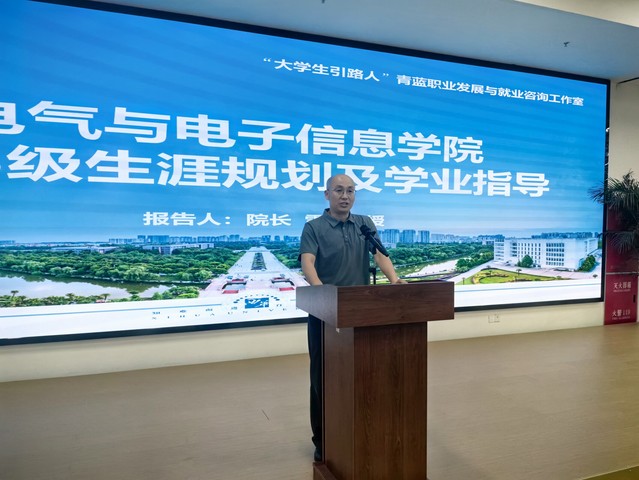 为进一步增强2023级学生的职业规划意识,明确职业目标、方向与路径,电气与电子信息学院于9月25日晚上7点,在西华大学五食堂四楼大厅隆重举办了职业规划及学业指导大会。2023级全体本科生及辅导员均参与此次大会,并由电气与电子信息学院院长雷霞担任主讲嘉宾,学院党委副书记郭忠林出席会议并发表讲话。
