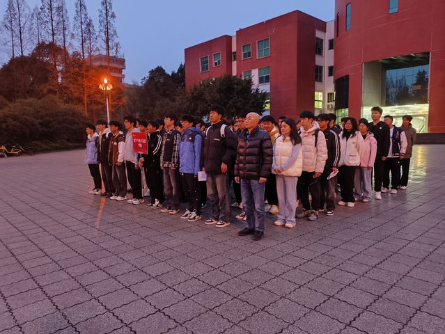 随着雄壮的《义勇军进行曲》响起,全场肃立,五星红旗在晨光中冉冉升起,迎风招展。在场的每一位师生面向国旗,行注目礼,心中涌动着对祖国无尽的热爱与崇高的敬意,共同见证了这一庄严而神圣的时刻。