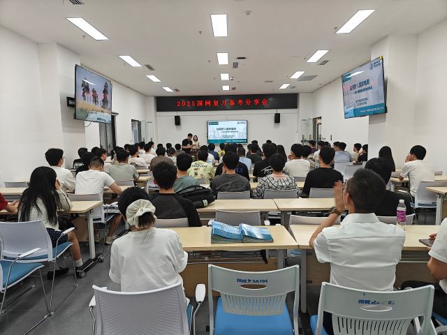 为进一步帮助学生了解国家电网招聘考试相关信息、提升复习效率,5月15日下午,由电气与电子信息学院主办的2025国网复习备考分享会——“如何挤入国家电网”在5ST427顺利举行。刘秀丽老师担任主持,活动吸引了众多有意向报考国家电网的本科生与研究生参加。