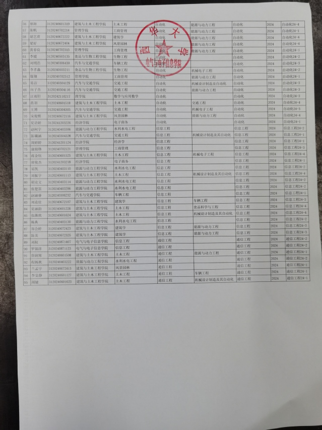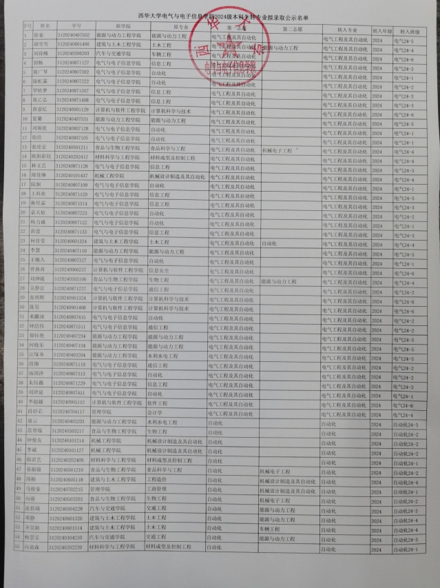电气与电子信息学院2024级本科生转专业拟录取名单公示