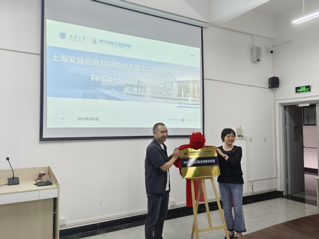 2025年6月3日16:30,上海安路信息科技股份有限公司与西华大学共建的“FPGA+SoC联合创新实验室”揭牌仪式在西华大学郫都校区第八教学大楼8-448隆重举行。