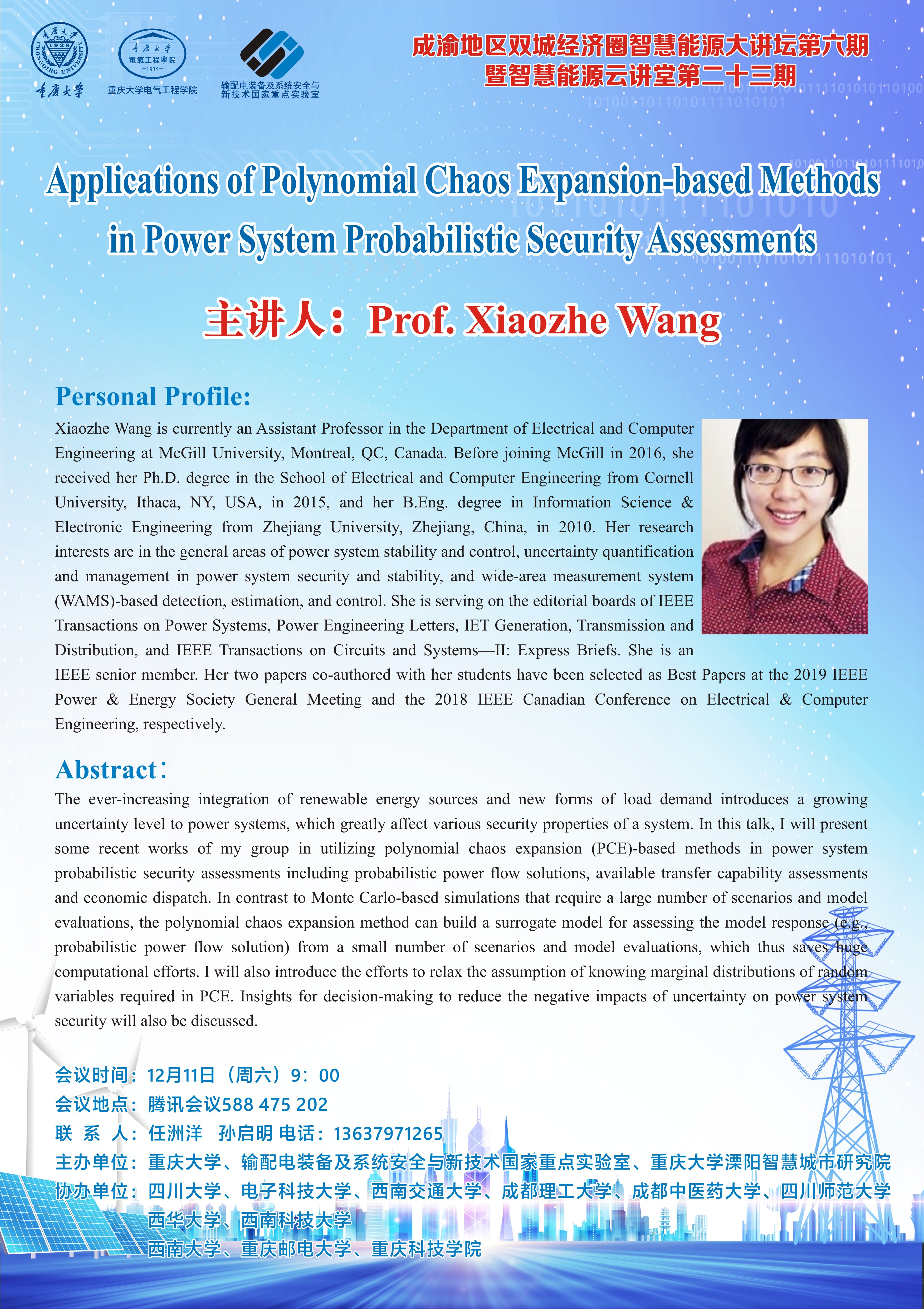 报告主题:Applications of Polynomial Chaos Expansion-based Methods in Power System Probabilistic Security Assessments