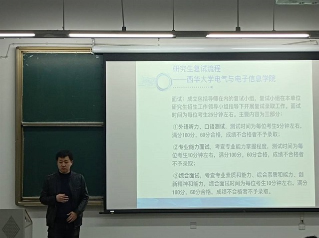 3月9日,电气与电子信息学院在6B-302召开2018级学生考研复试交流会。电气学院学工办主任刘钊主持,教师吴昀璞主讲,2018级电气工程及其自动化专业及其他有考研复试疑问的同学到场参加。