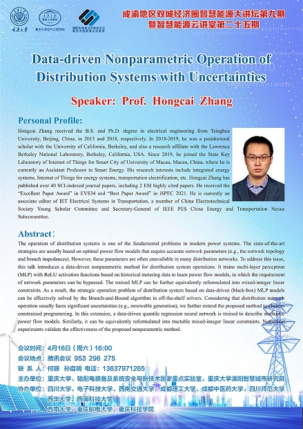 报告主题 : Data - driven NonparametricOperation of Distribution Systems with Uncertainties