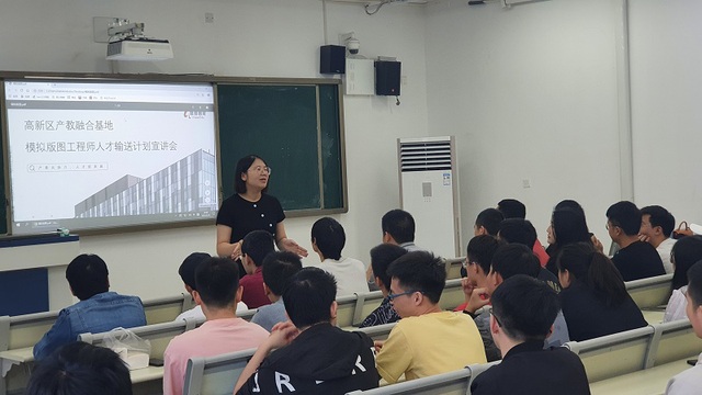516日晚,成都高新区产教融合基地校企合作经理王霞赴电气学院(宜宾校区)1208开展招聘宣讲。2018级电气工程和信息工程学生到场参加。此次宣讲会主要是针对模拟版图工程师这样一个人才输送计划。