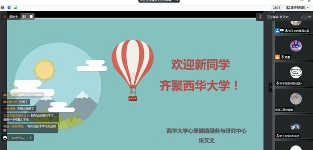 为帮助2022级新生更好适应大学生活,电气与电子信息学院于98-9日,举办了四场线上心理健康讲座,分别由心理健康服务与研究中心的王文娟、綦越、王中瑞、张又木老师主讲,2022级宜宾校区和校本部的全体本科和研究生线上参加。