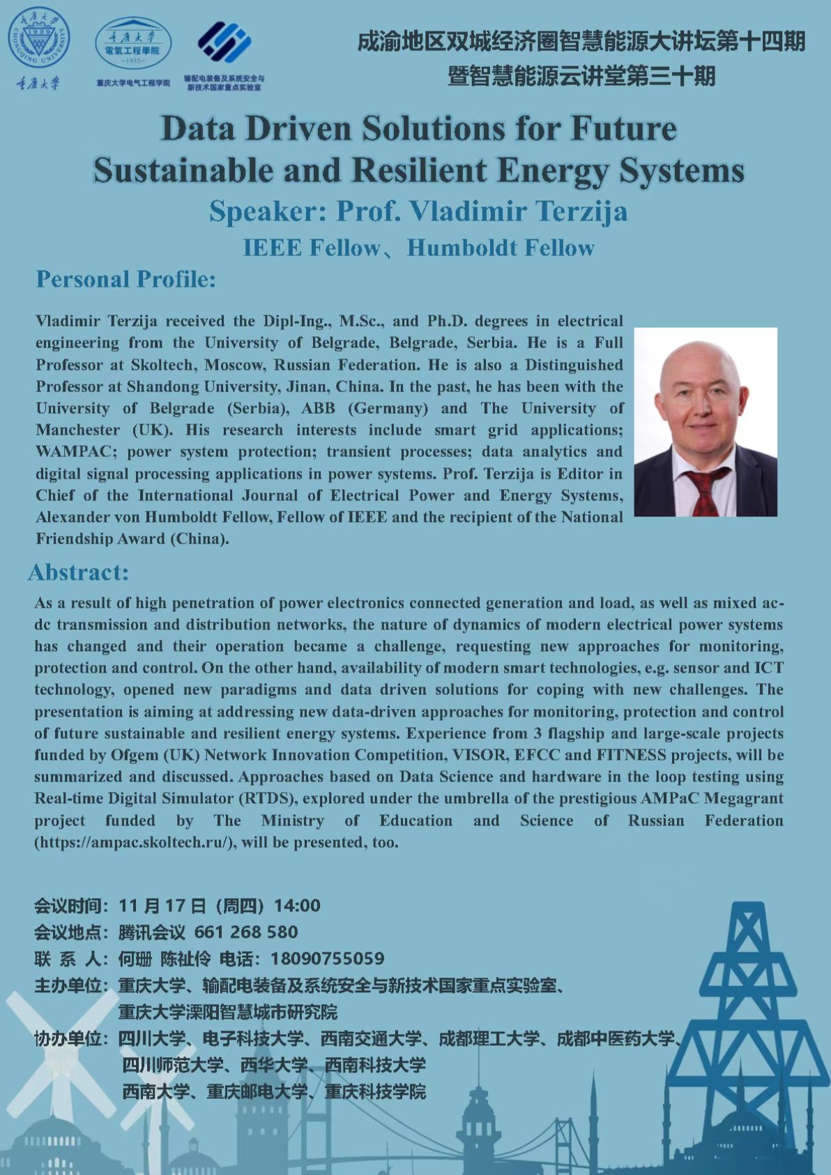报告主题:Data Driven Solutions for Future Sustainable and Resilient Energy Systems