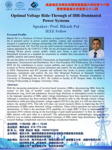 报告主题:Optimal Voltage Ride-Through of IBR-Dominated Power Systems