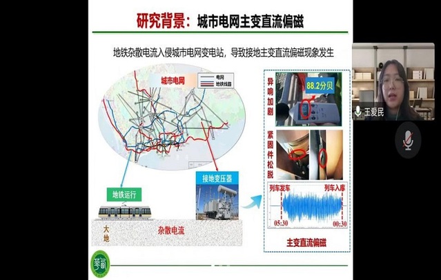王爱民老师在线上进行了主题为“地铁杂散电流分析及抑制方法”的精彩报告。王爱民老师从已经运行的直流地铁其杂散电流无法避免的问题为由,从地铁线路杂散电流时空分布特征、基于GA算法的直流偏磁优化抑制以及未来发展趋势等方面介绍了该研究内容。