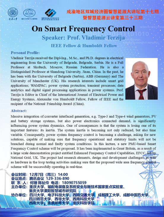 电气与电子信息学院学术报告——On Smart Frequency Control