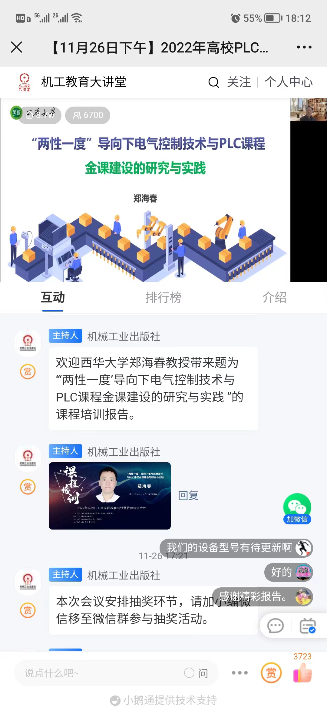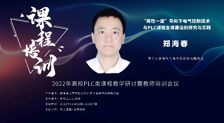 2022年11月26-27日,教育部高等学校自动化类专业教学指导委员会“2022年高校PLC类课程教学研讨暨教师培训会议”采用“线上直播”方式召开,本次大会旨在贯彻落实全国教育大会精神,推进相关高校和专业的教育教学改革,提升高校自动化类专业人才培养能力,搭建“一流专业、一流课程”建设经验的交流平台,以推广优秀教学成果,全面提升教师教学能力。我院郑海春副教授代表我校做了主题报告,围绕课程建设分享了“‘两性一度’导向下电气控制技术与PLC课程金课建设的研究与实践”的主题报告。