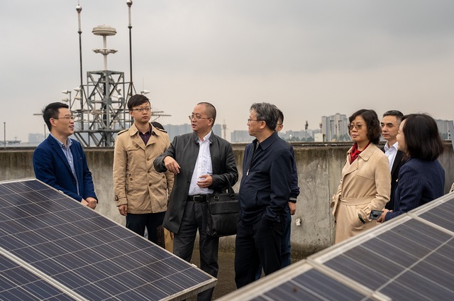 在雷霞的带领下,考察组先后来到6A区天台、三楼、二楼和一楼参观考察工程中心,由学院专业实验中心主任孙章为考察团进行主要讲解,重点介绍了学院及其共建单位在微电网相关研究方向取得的代表性成果。